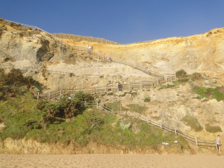 Een stukje verderop kon je het strand op bij de zogenoemde “Gibson Steps”. Dit deed ik dan ook en met mijn blote voeten daar in het zand besloot ik dat ik de volgende ochtend graag bij zonsopgang terug wilde komen op deze plek omdat me dat zeker de moeite waard leek!