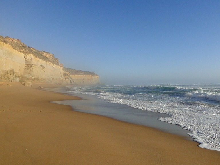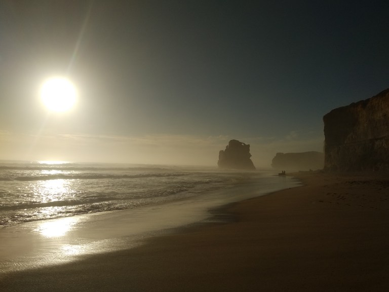 Mijn plan was om bij zonsondergang naar de 12 Apostles te gaan omdat ze dan (en bij zonsopkomst) het mooist zouden zijn. Wachten tot de zon onder ging, deed ik op een strandje aan een baai in het stadje Port Campbell.