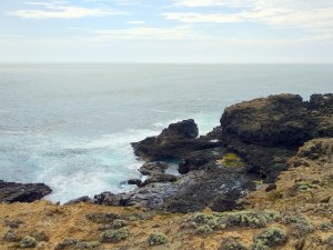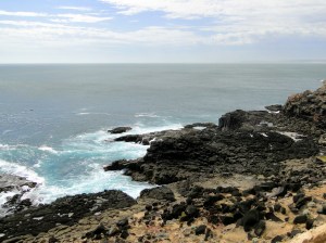 Na mijn lunch reed ik verder naar Cape Bridgewater. Ik zag er eigenlijk een beetje tegenop omdat het zo bewolkt was en aan de kust ook hard waaide. Daar had ik gewoon niet zoveel zin in. Maar mijn aandacht ging uit naar wat ik telkens op kaartjes zag staan van deze omgeving namelijk Blowholes. Ik dacht dat er misschien net als in Ijsland geisers zouden zijn. Op internet kon ik er niet echt iets over vinden dus moest ik het toch echt zelf uitvinden.