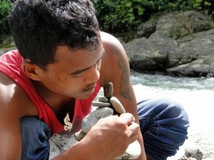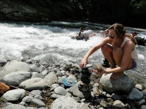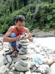 Een hobby van de mensen in Bukit Lawang is om zoveel mogelijk stenen proberen op te stapelen. Dat werkt heel rustgevend eigenlijk 😉