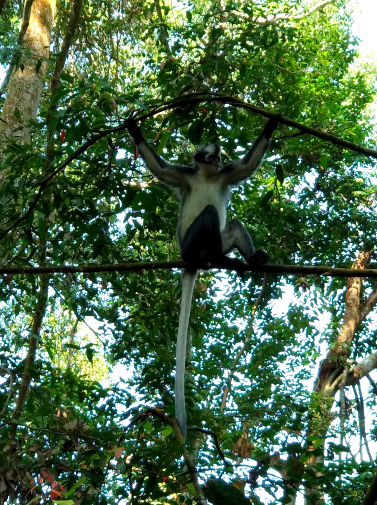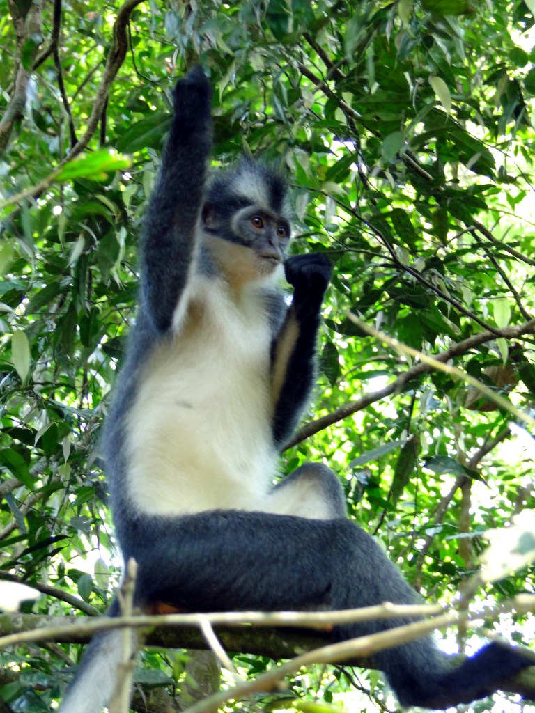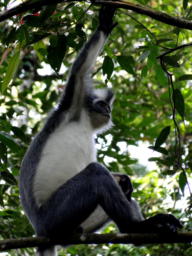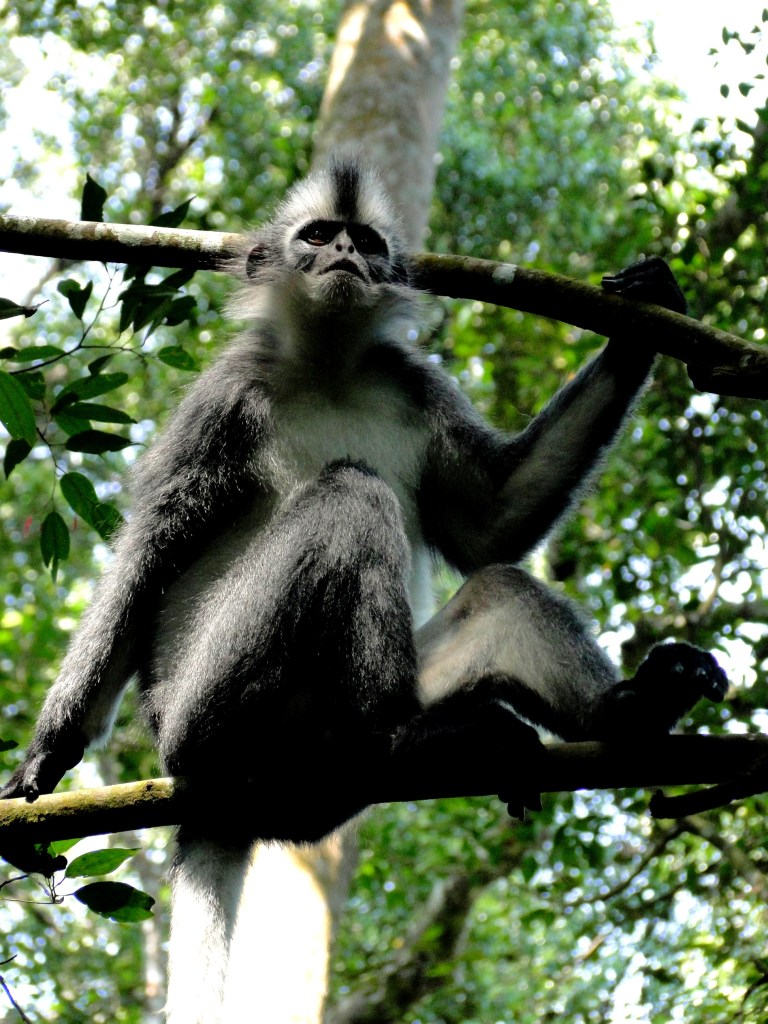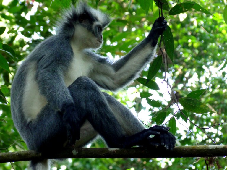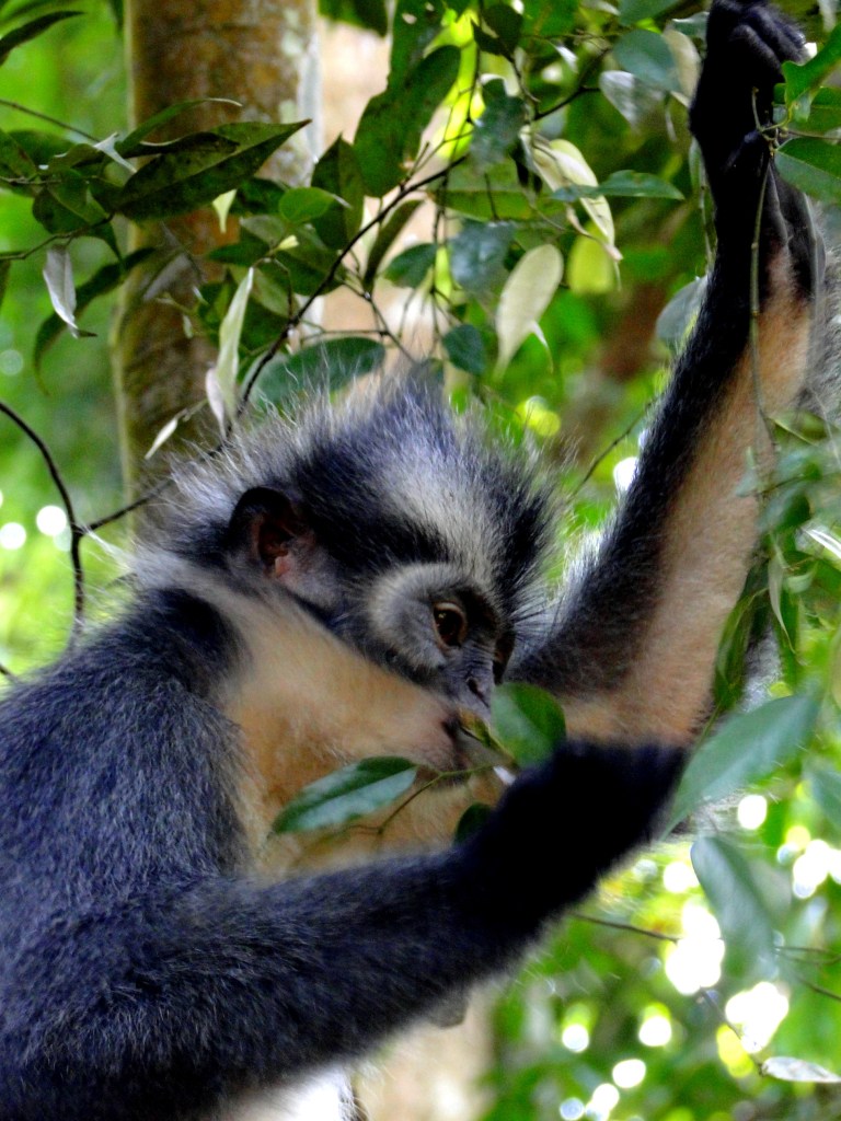 Al vrij snel begaven we ons in het territorium van een paar Thomas Leaf Monkeys. Deze apen zijn totaal niet bang, zeer fotogeniek en grappig om te zien. Ze maken me vrolijk!