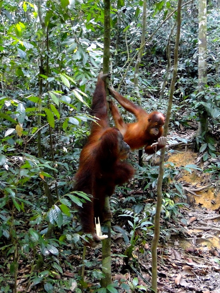 Tot op dat moment hadden we nog geen Orang Hutan (letterlijk vertaald: Bosmens) gezien. Dat is misschien jammer maar je hebt nooit de garantie dat je er eentje tegenkomt. Helaas zijn veel mensen (lees toeristen) verwend. Ze willen alleen betalen voor een jungle trek als ze zeker weten dat ze Orang-oetans tegen gaan komen. Vandaar vroeger (zoals ik al eerder zei) het voeren van de dieren.