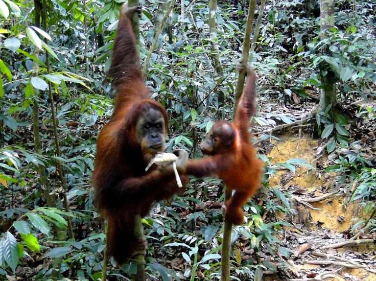 Wat extra bijzonder was, is dat er nog vier andere Orang-oetans in dezelfde omgeving rondhingen. Normaal gesproken zie je niet zoveel Orang-oetans bij elkaar aangezien ze territoriaal zijn. Vooral de volwassen mannelijke Orang-oetan.