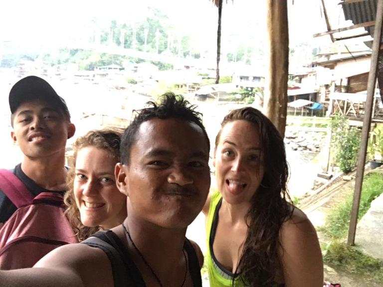 Kleddernat van het raften maar zeer voldaan klommen we aan wal in Bukit Lawang.