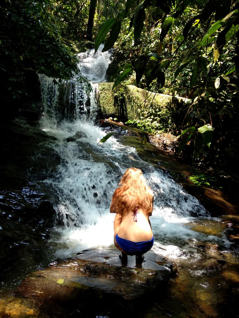 Ik was al een keer eerder bij deze waterval geweest maar toen was het water niet zo hoog en kon je er minder goed zwemmen. De waterval bestaat uit verschillende delen. Bovenaan is echt een soort pool ontstaan waar je eerst naar toe moet klimmen 🙂
