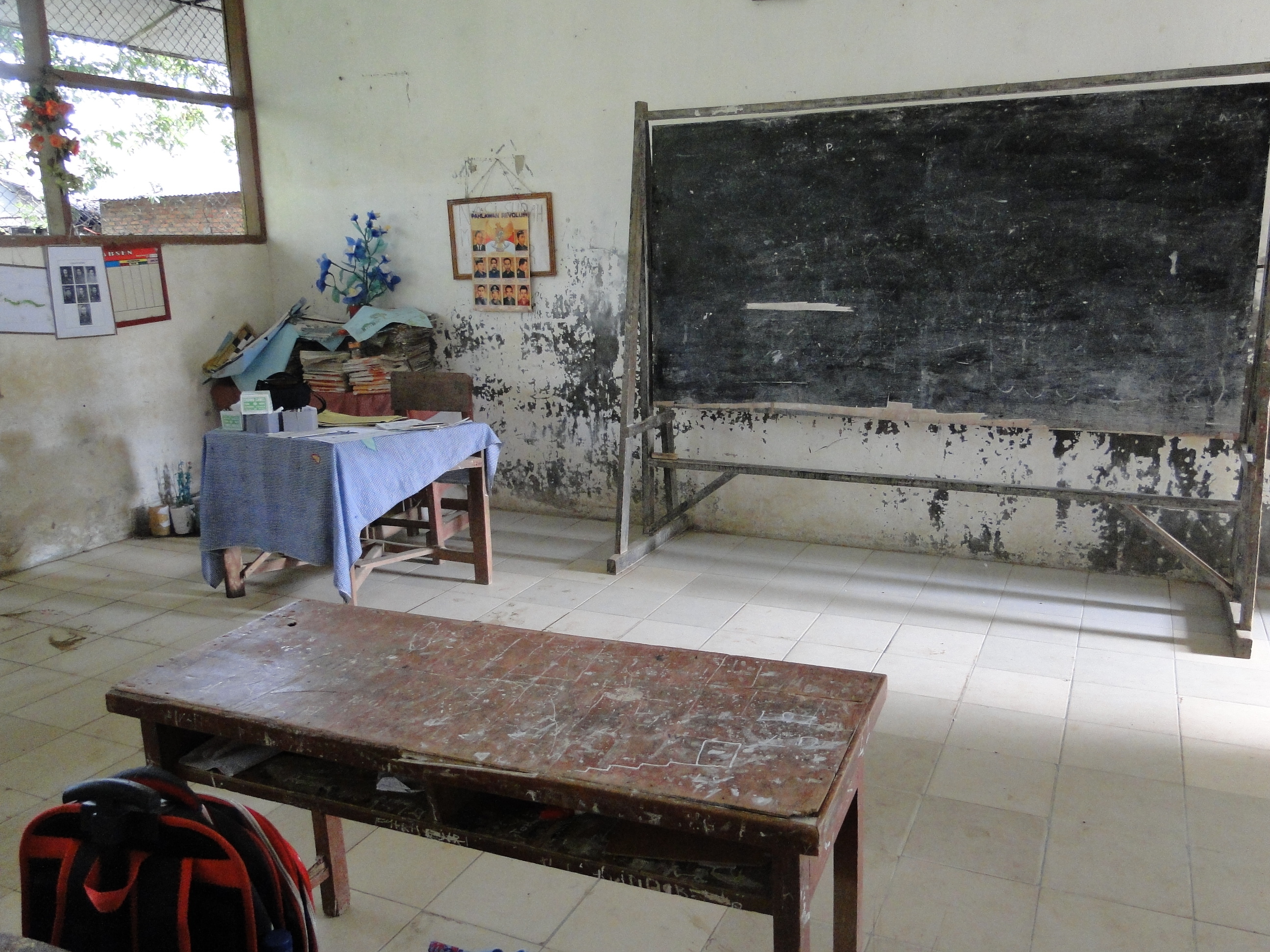 En dan een standaard klaslokaal. De kinderen kunnen zitten en er is een krijtbord aanwezig maar daar is dan ook alles mee gezegd. En laat ik vooral niet over schimmel, licht en decoratie beginnen…
