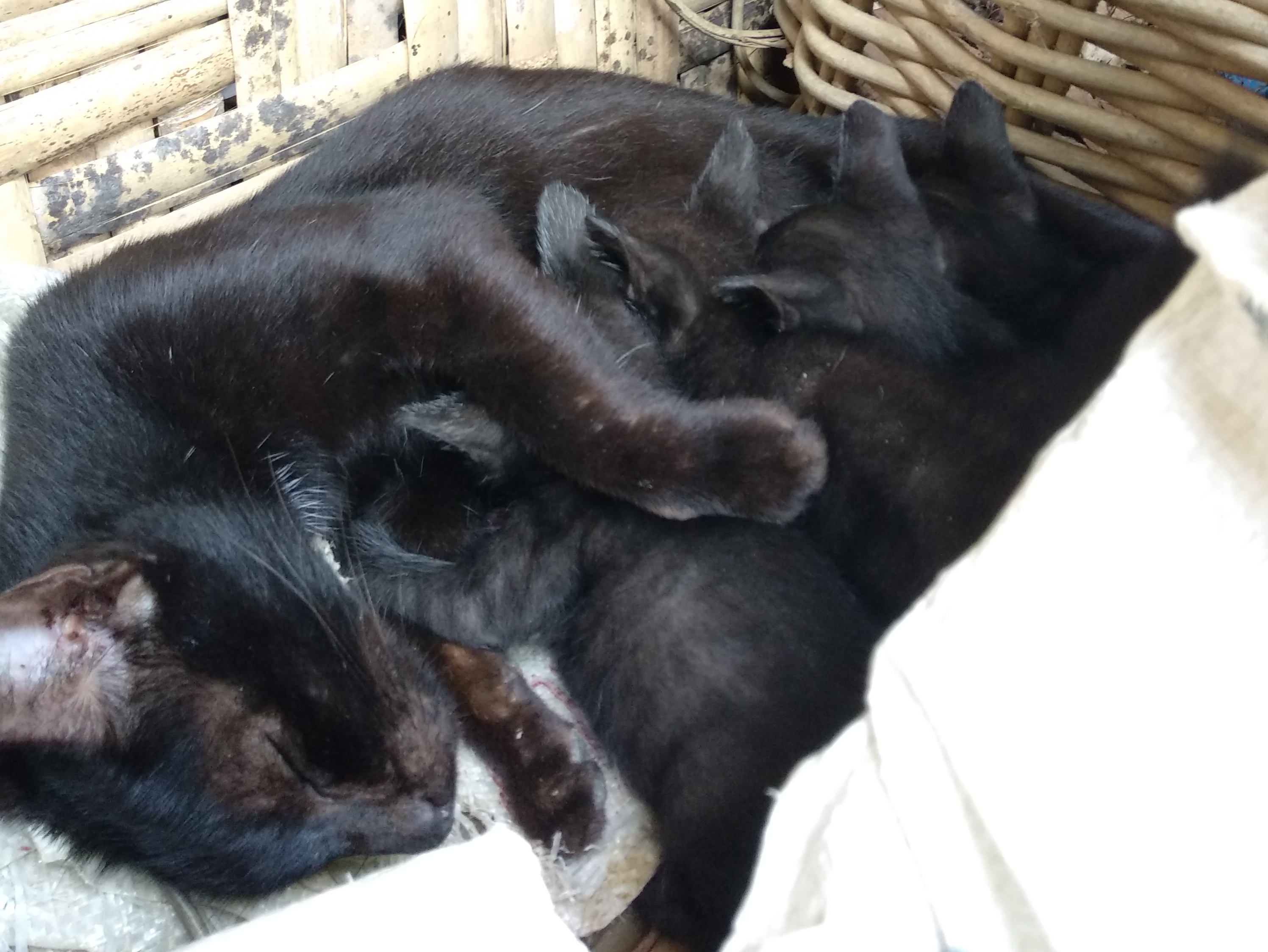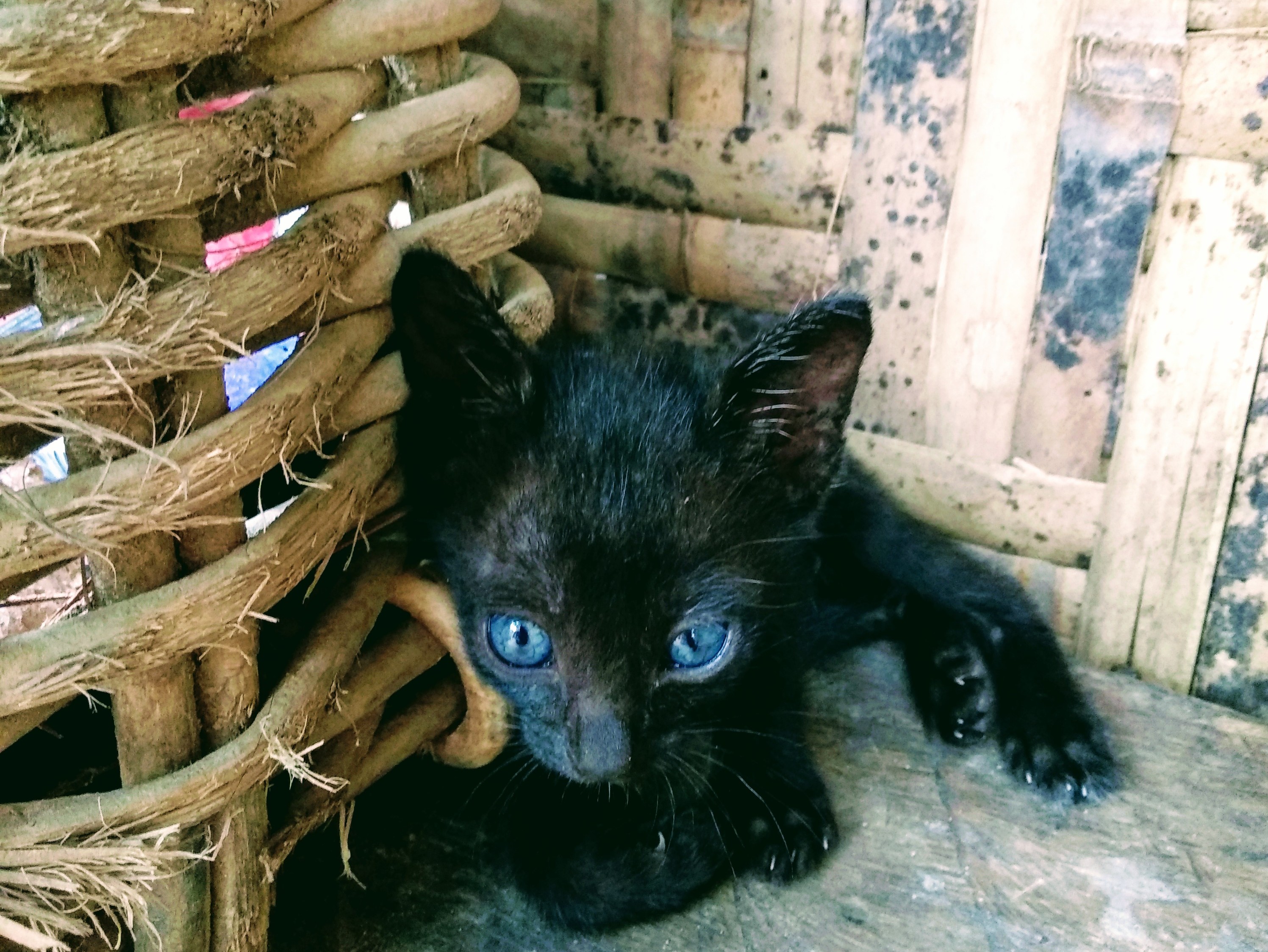 Altijd als ik bij Edi’s familie thuis ben, ga ik op zoek naar de kat die ik twee jaar geleden als kitten uit de stromende regen langs de kant van de weg heb gered. Luna en Edi’s moeder hebben de kat goed verzorgd en nu is het een mama-kat geworden!