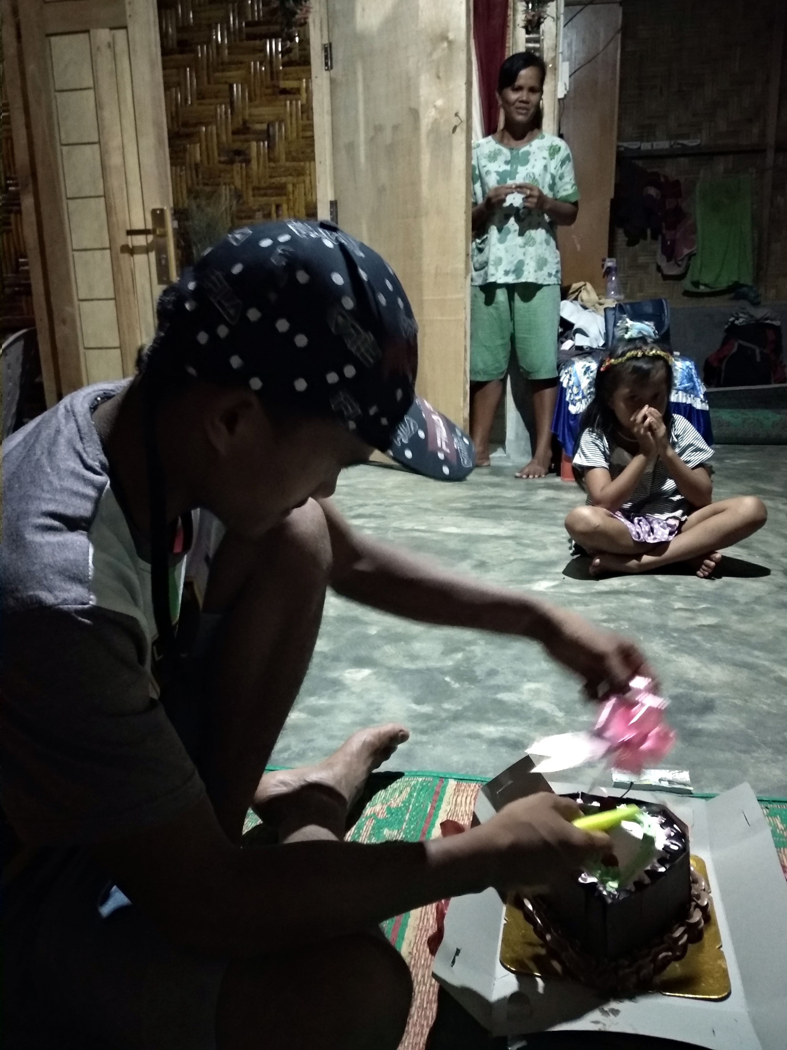 Ik bracht een taart en bananencake mee naar Edi’s familie en gaf Edi een cadeau. Voor mij heel gewoon om te doen, maar toen ik de reacties van iedereen zag en vroeg aan Edi wat er was, vertelde hij mij dat hij nog nooit een taart had gegeten met zijn familie op een verjaardag.