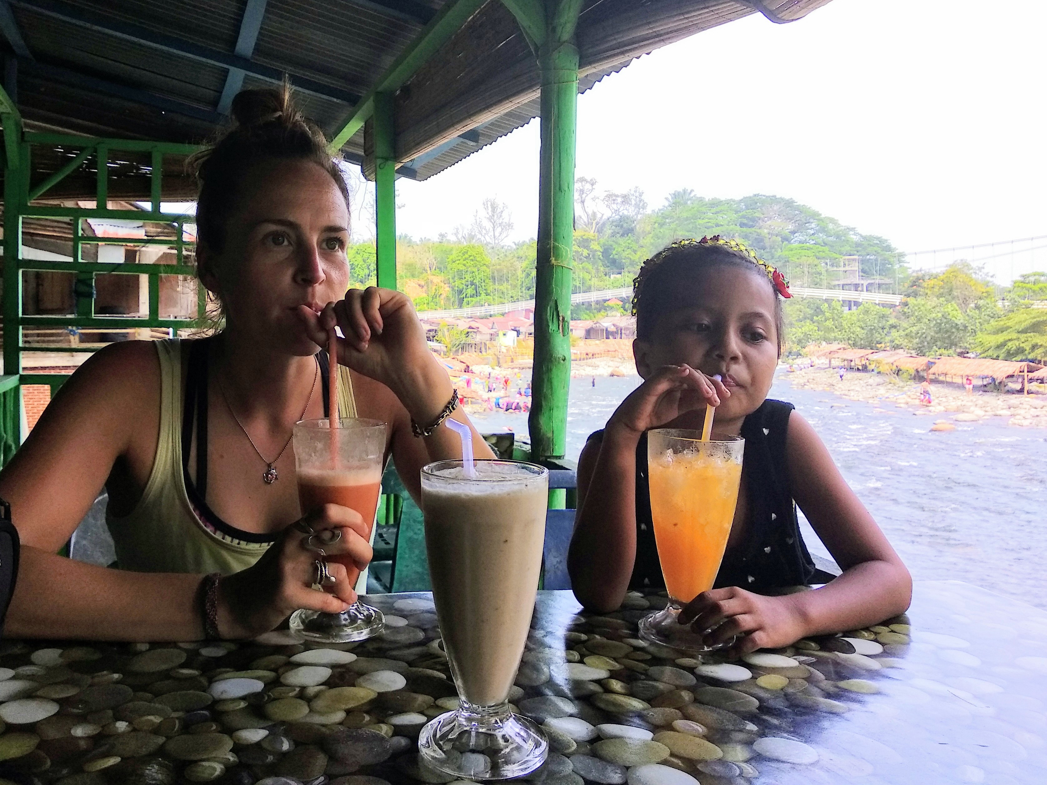 Als het zo uitkomt neem ik Luna mee om te zwemmen of voor mandi (douchen). Samen met Edi en Nabil (een andere jongen uit de buurt die al jaren naar de Trust komt) maakten we er een feestje van door eerst bananenpannenkoek te eten.