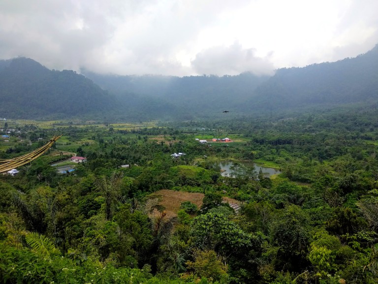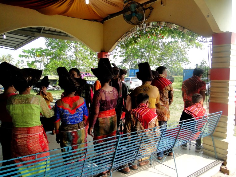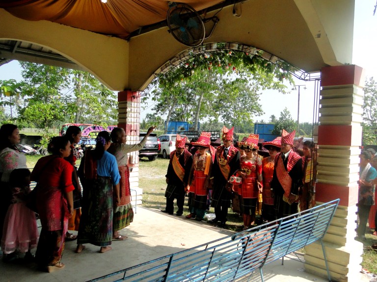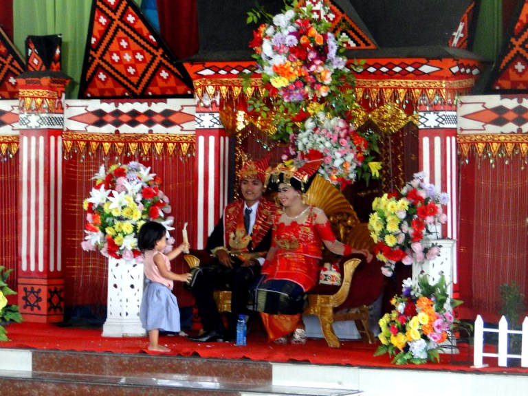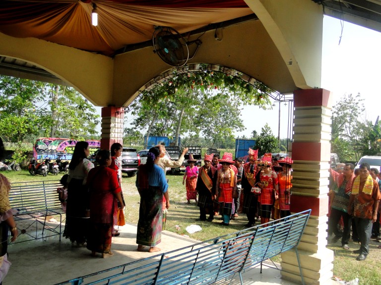 De bruiloft was niet in Bukit Lawang maar vlakbij Berastagi. Dat is ongeveer drie uur met de scooter rijden. Samen met Jeri en Laetitia vertrokken Edi en ik ’s ochtends vroeg om in het dorpje van Ingan door hem opgepikt te worden en vervolgens samen naar de locatie van de bruiloft te gaan.